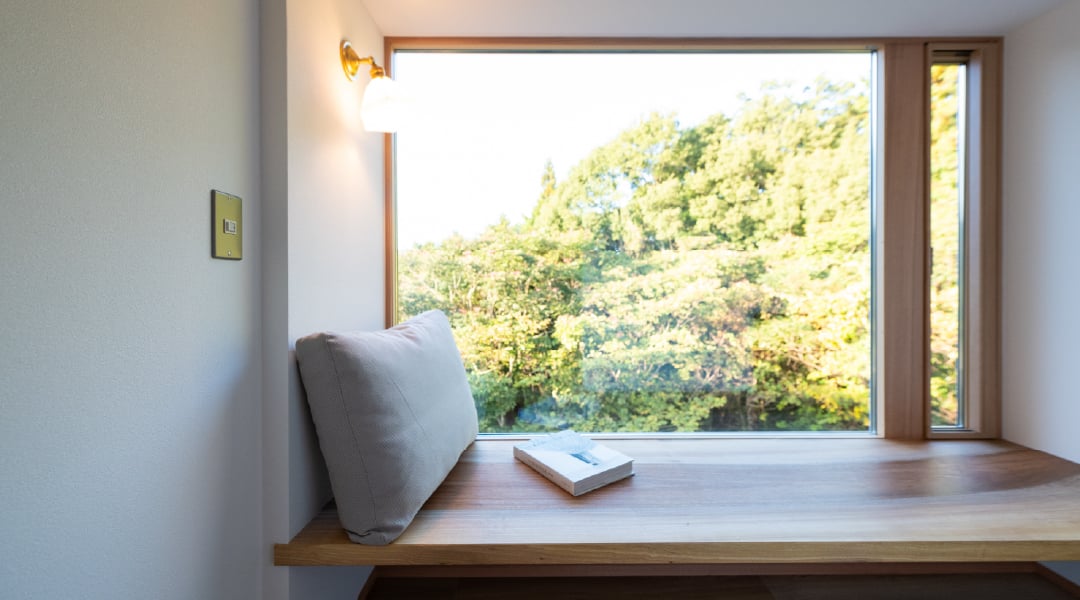 大きな窓で景色を楽しみながらも、室内は快適。温度の変化がゆるやかなので、冷暖房に頼りすぎず、一年を通して心地よく過ごせる住まいです。工事中の大工さんも驚いた断熱性能を季節の変わり目の今こそ、ぜひ現地でご体感ください。